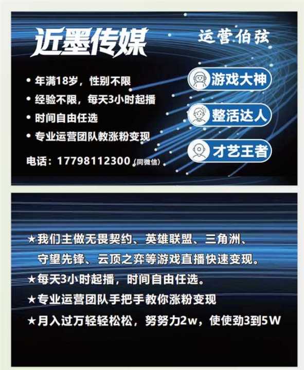 工作内容:抖音游戏直播 直播时长3小时+工作中活泼开朗,幽默风趣,善于调动氛围。